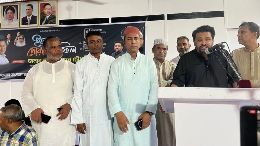 সংক্ষিপ্ত বক্তব্যে তিনি বলেন, রোজার মাসে দীর্ঘ বক্তব্য দেওয়ার সুযোগ নেই। তবে কিছু সিদ্ধান্ত নিয়ে তিনি অনুষ্ঠানে এসেছেন এবং সেগুলো নেতাকর্মীদের সঙ্গে ভাগাভাগি করতে চান। তিনি বলেন, নির্বাচনের পুরো সময়জুড়ে তিনি একটি বিষয়ই বলেছেন—এই নির্বাচন তিনি একা করেননি, বরং সবাই মিলে করেছেন। বিএনপির প্রার্থী হিসেবে সংসদে পৌঁছানোর কৃতিত্ব তিনি মঞ্চে উপস্থিত নেতাকর্মীদের দেন।