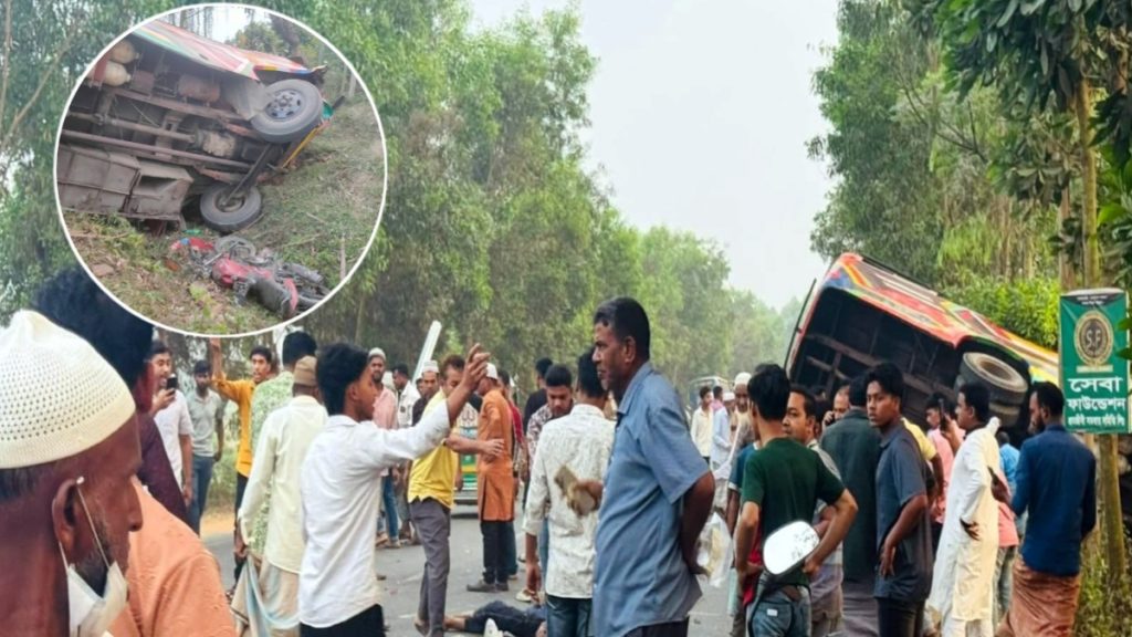 ফটিকছড়ি (চট্টগ্রাম): চট্টগ্রামের ফটিকছড়ি উপজেলায় একটি সড়ক দুর্ঘটনায় মোটরসাইকেল আরোহী তিন কিশোরসহ অন্তত চারজন নিহত হয়েছেন। এ ঘটনায় বাসের অন্তত ১৬ জন যাত্রী গুরুতর আহত হয়েছেন।